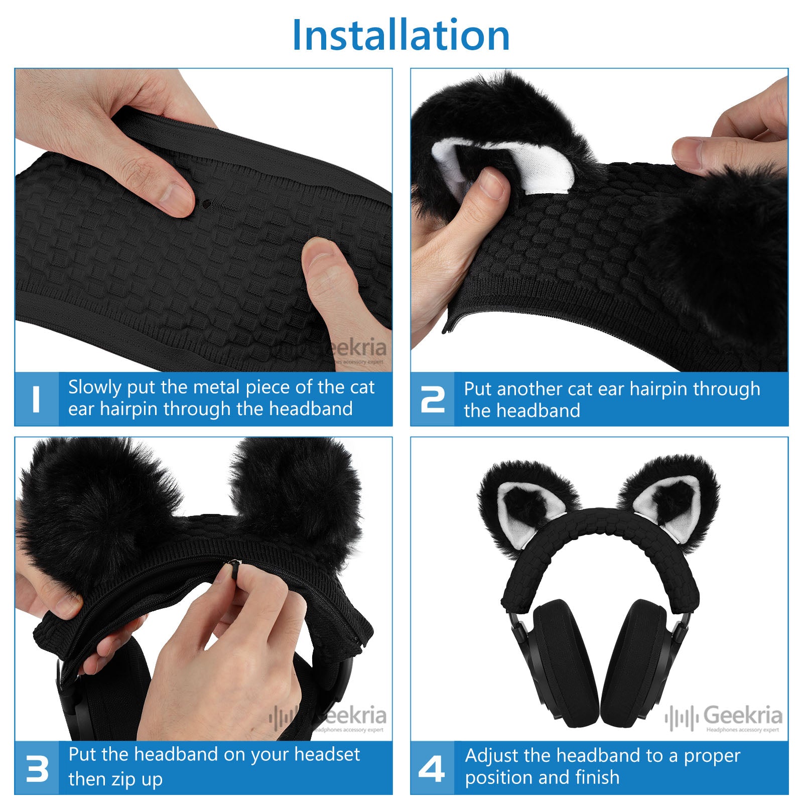 Geekria カバー 互換性 ニット生地 ヘッドバンド猫耳スーツ レイザー Razer, スティールシリー SteelSeries, HyperX, ゼンハイザー Sennheiser, アストロテック ASTRO, ソニー Sony, ロジクール Logitech, オーディオテクニカ ATH ヘッドホンに 対応 簡単に装着 工具不要