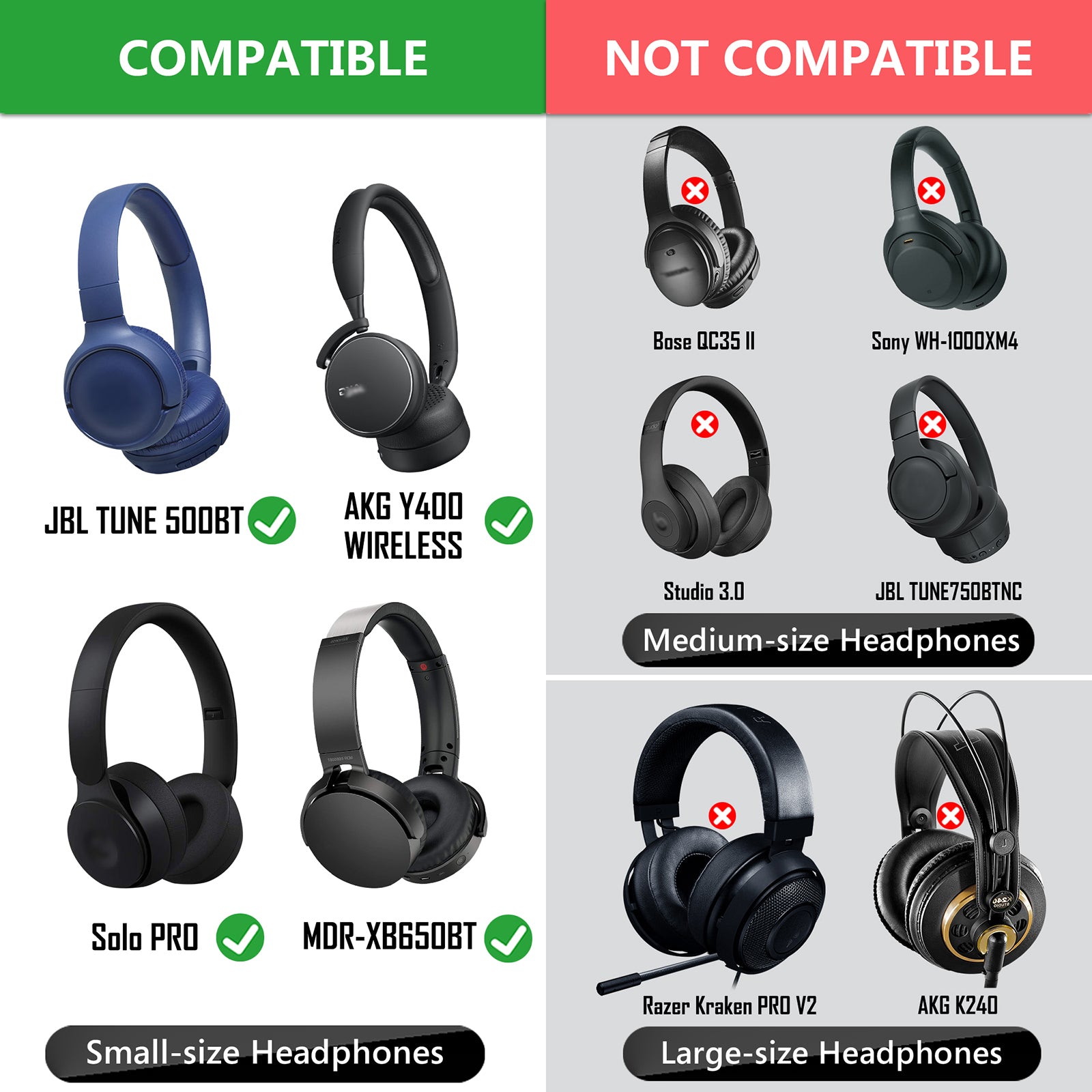 - Compatible with JBL TUNE 500BT, T450BT, T450, LIVE 400BT, E50BT, E45BT, E40BT, C300SI headphone covers