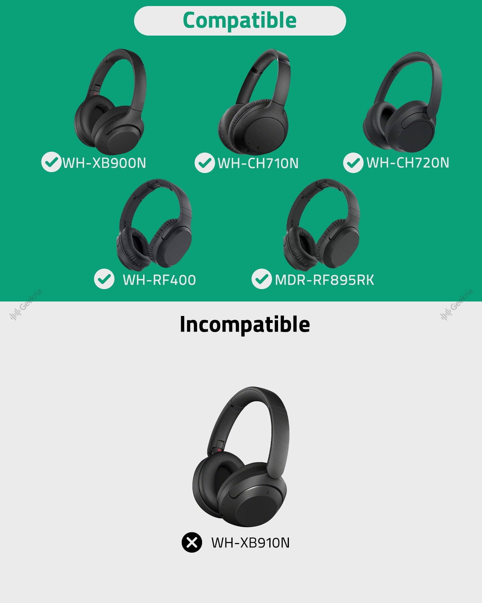 - Compatible with Sony WH-XB900N, WH-CH710, WH-CH720N, WH-RF400, MDR-RF895RK earpads.