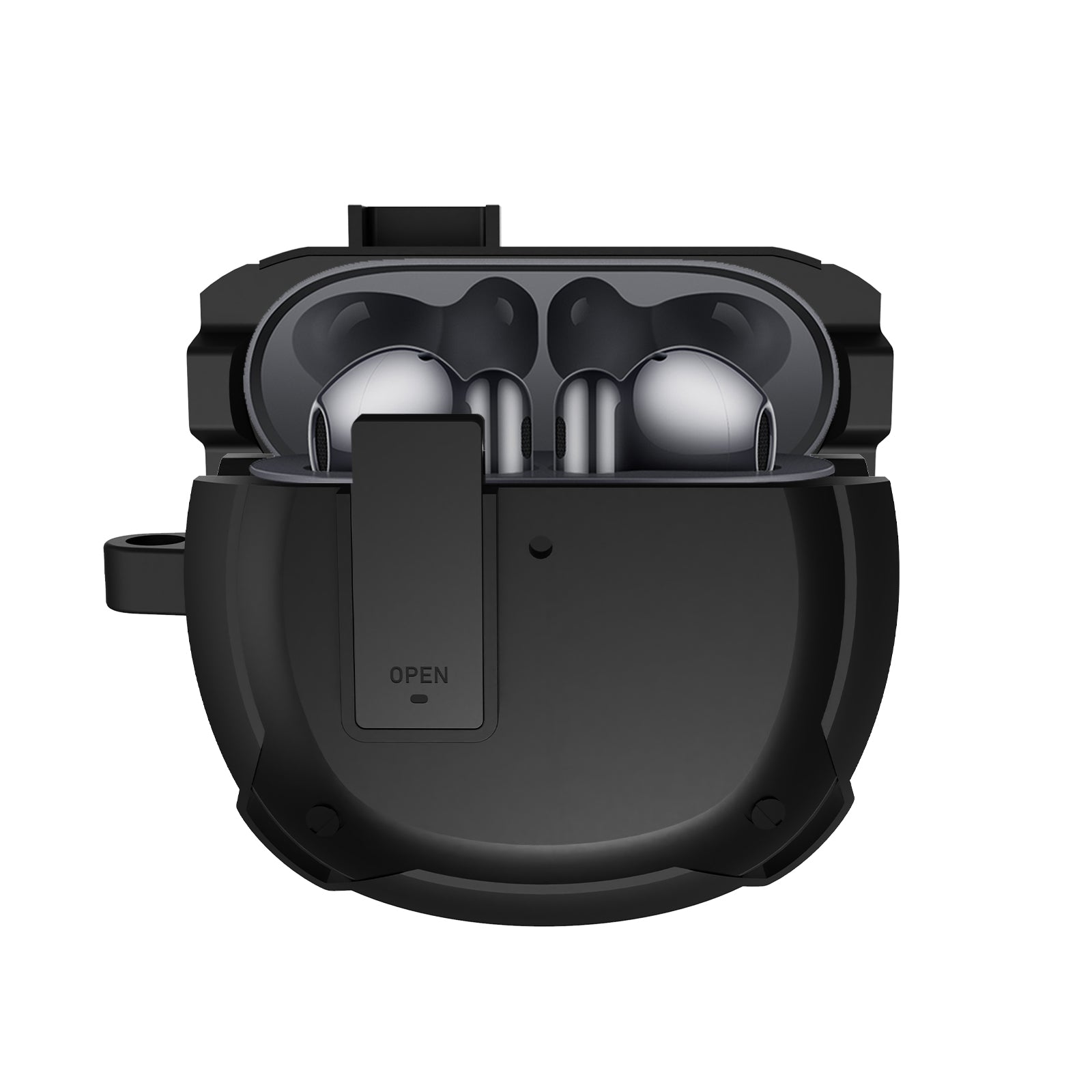 - 内側の粘着ストリップはイヤホンケースが簡単に外れないように設計されています、キーホルダーフック付き、カバーを外さずにイヤホンを充電できるように特別な切り欠きます。