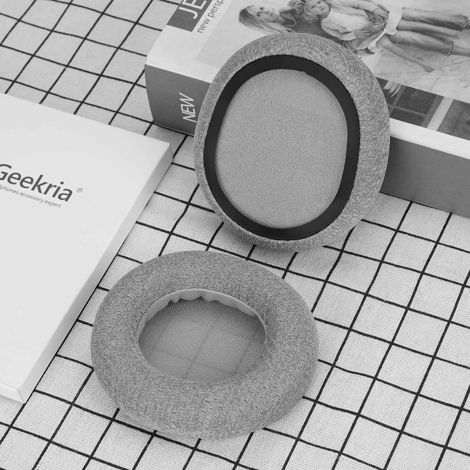 - One set of ear cushions. Made by Geekria.