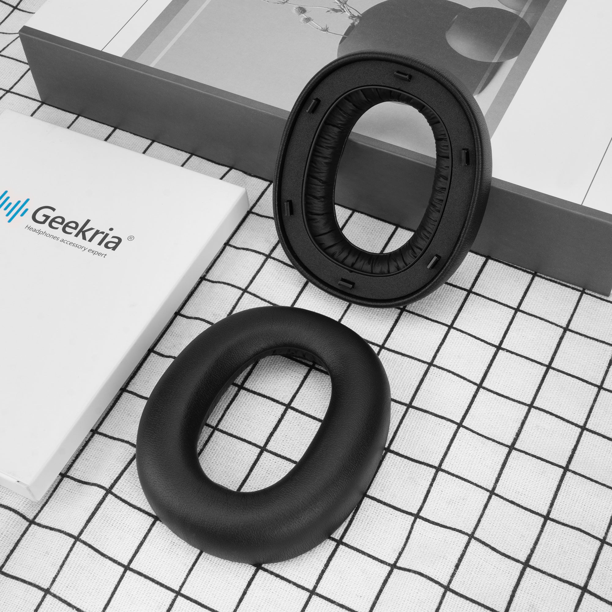 - One set of ear cushions. Made by Geekria.