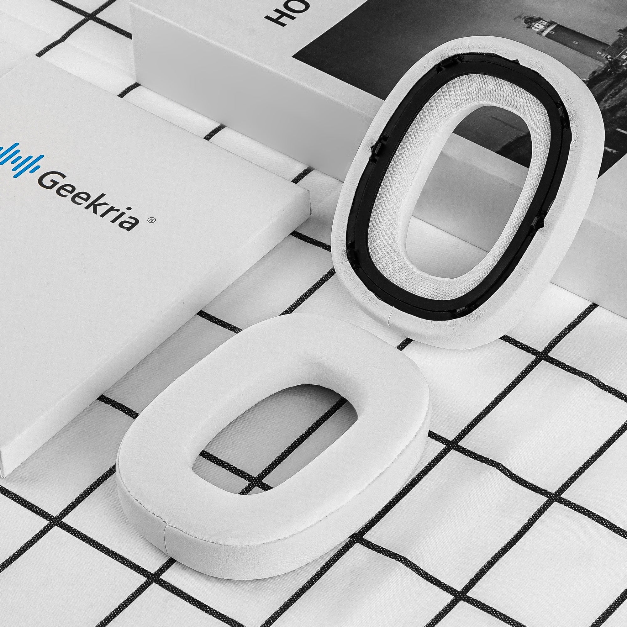 - One set of ear cushions. Made by Geekria.