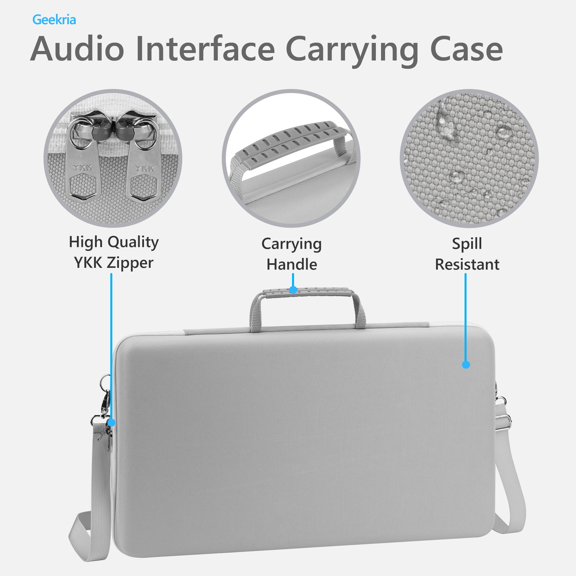 - ハードEVAシェルは、耐衝撃性、防塵性、防水性に優れ、落下、傷、水しぶき、ほこりからオーディオインターフェースとその付属品を保護します。