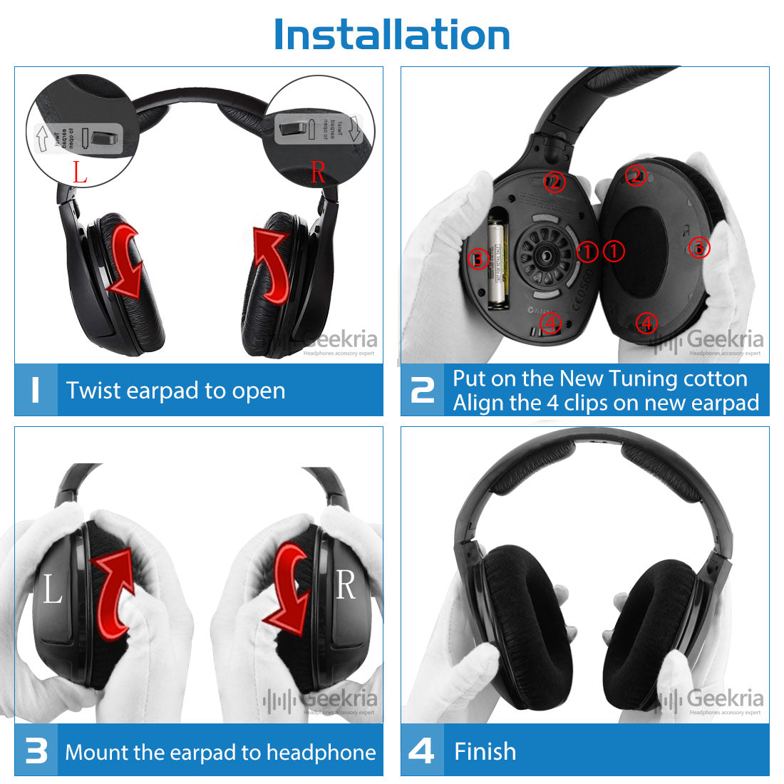 - 新しいイヤーパッドに交換して、耳をより快適にします。