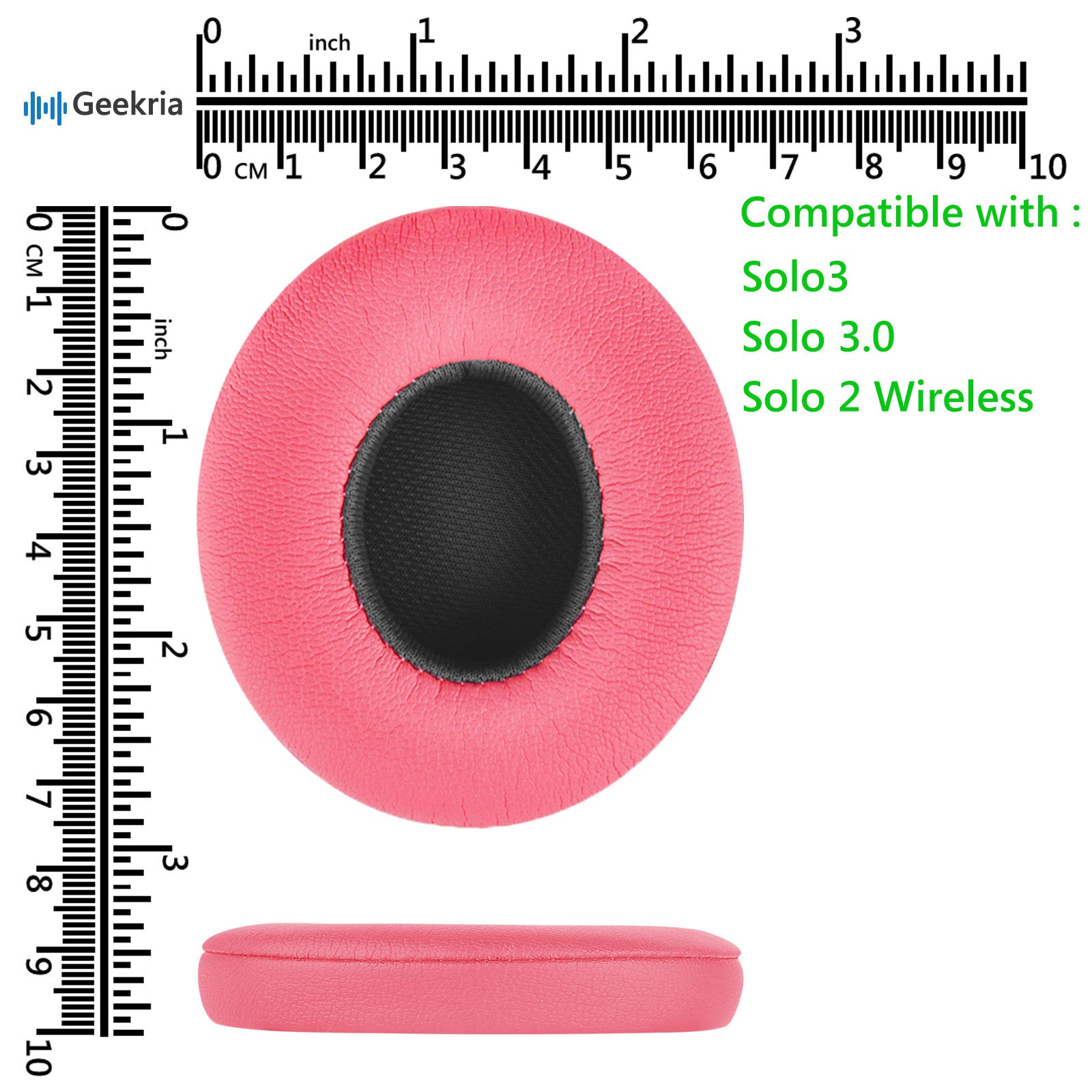 Geekria QuickFit イヤーパッド 互換性 パッド Beats Solo 3, Solo 3.0 Wireless (A1796) ヘッドホンに対応 イヤパッド/イヤークッション/イヤーカップ (プロテインレザー / ピンク)